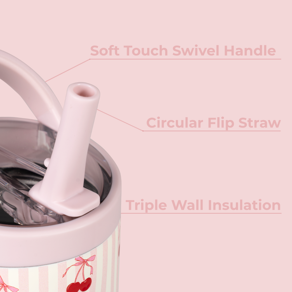 Fuel your active lifestyle with the Sport 40oz in Sweet Cherry. With its cream base and cherry-red accents, this water bottle delivers maximum hydration while standing up to the demands of training, gym sessions, and busy days on the move. The 40oz capacity keeps you going longer between refills, making it ideal for workouts or long stretches outdoors. Built for performance, the Sport bottle is completely leakproof with the straw down, features an ergonomic bucket handle for a secure grip on the go, and fits in most cupholders for convenient transport. Constructed from 18/8 stainless steel with triple-wall insulation, it keeps drinks cold for hours, while a protective rubber base adds durability and stability wherever you set it down. Practical, rugged, and dependable, the tumbler 40oz is hydration designed to perform as hard as you do. Dimensions: 4.78" x 4.78" x 10.8" Base diameter: 3.14" Capacity: 40 ounces of water ~ 1182 mL Weight: 20oz